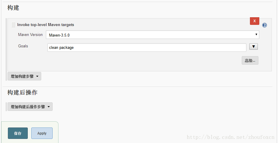 然后设置构建相关的参数,比如选择我们配置好的Maven及指定Maven的goals,如下图所示: