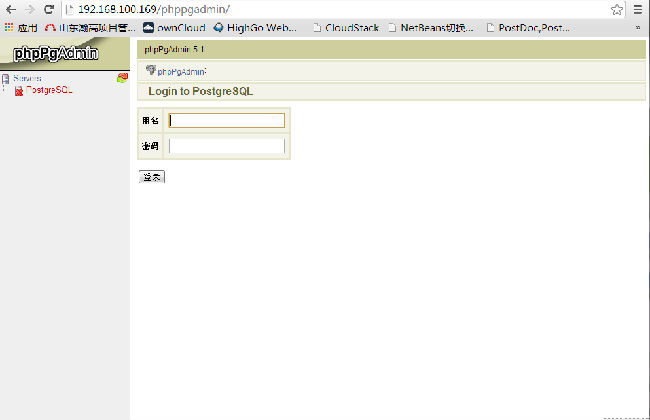 到浏览器中输入地址:http://ip:port/ phppgadmin (默认端口80 可以省略)