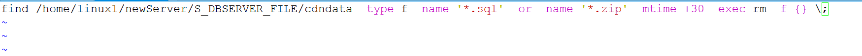 find /home/linux1/newServer/S_DBSERVER_FILE/cdndata -type f -name '*.sql' -or -name '*.zip' -mtime +30 -exec rm -f {} \;