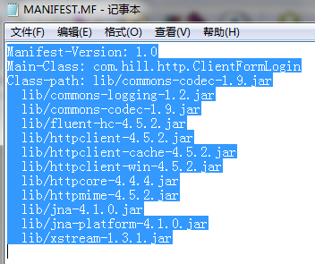 2)在class-path后写上引用到的所有jar包可以分行写,并不是说一行写一个jar包,只要保证这一行不要太长就好,否则会出现Exception in thread "main" java.io.IOException: line too long。