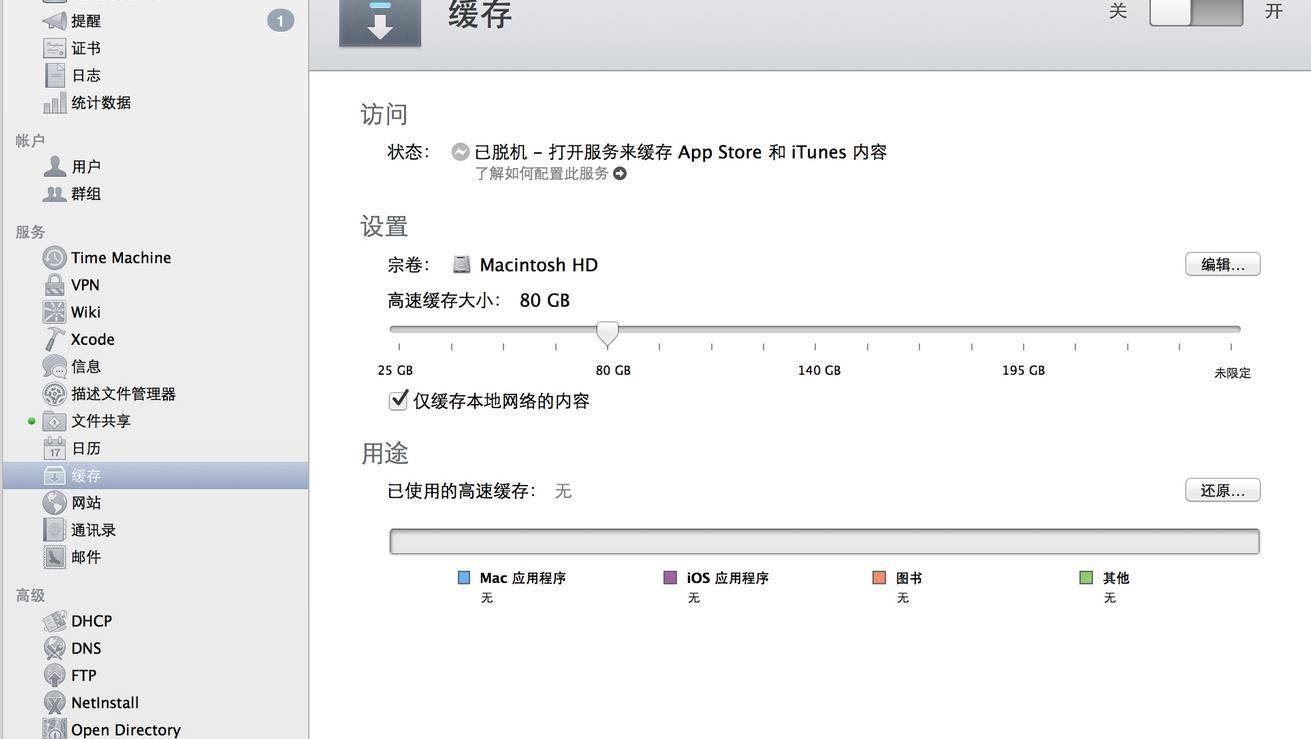 本地缓存的应用程序、软件更新和OS X恢复映像等