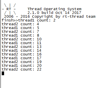 //rt_uint32_t count = 0; //串口看上去是同时打印tid1和tid2的数值后延时1s,而不是tid1延时1s,tid2延时1s,此问题待考虑解决办法