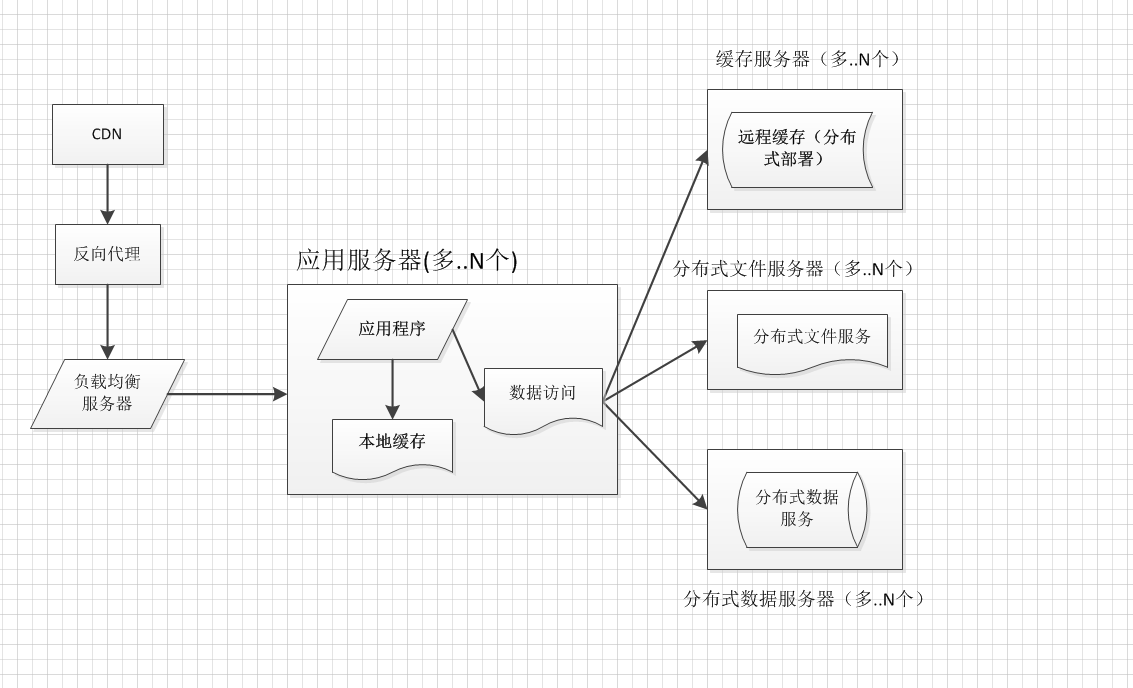 二、发展中期:网站发展中期,随着用户访问量的不断递增,我的技术架构发展成什么样子了呢?入下图所示: