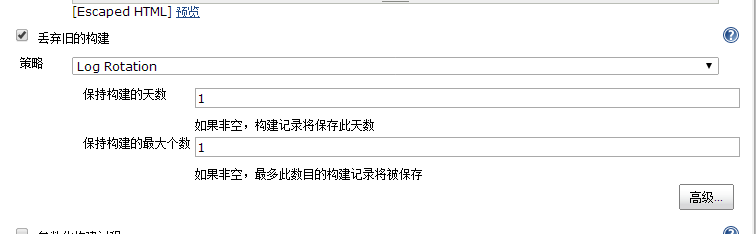 旧的构建保存了你在一次构建中的所有临时文件,如果构建没有保留的必要,就勾选丢弃旧的构建,同时设置保持构建天使和保持构建的最大个数两个参数。