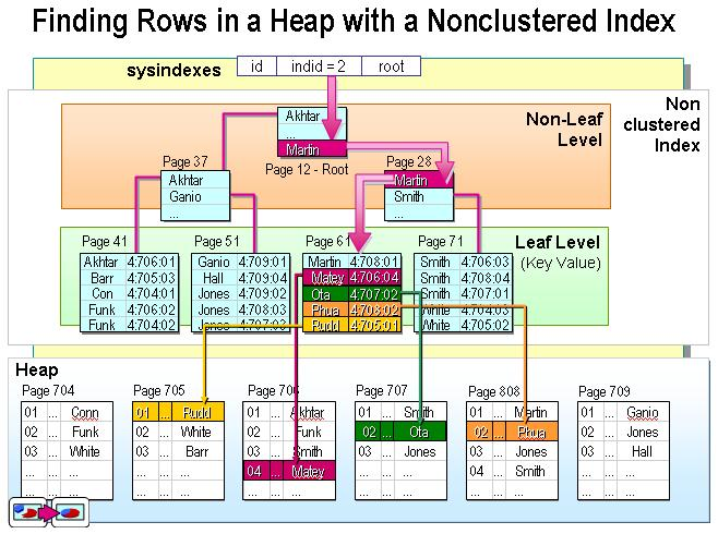 非聚集索引实际存放的示意图