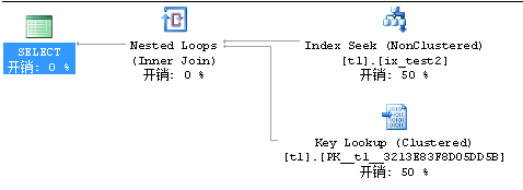在SQL Server里面查询效率如下所示,Index Seek就是索引所花费的时间,Key Lookup就是二次查询所花费的时间。可以看的出二次查询所花费的查询开销占比很大,达到50%。