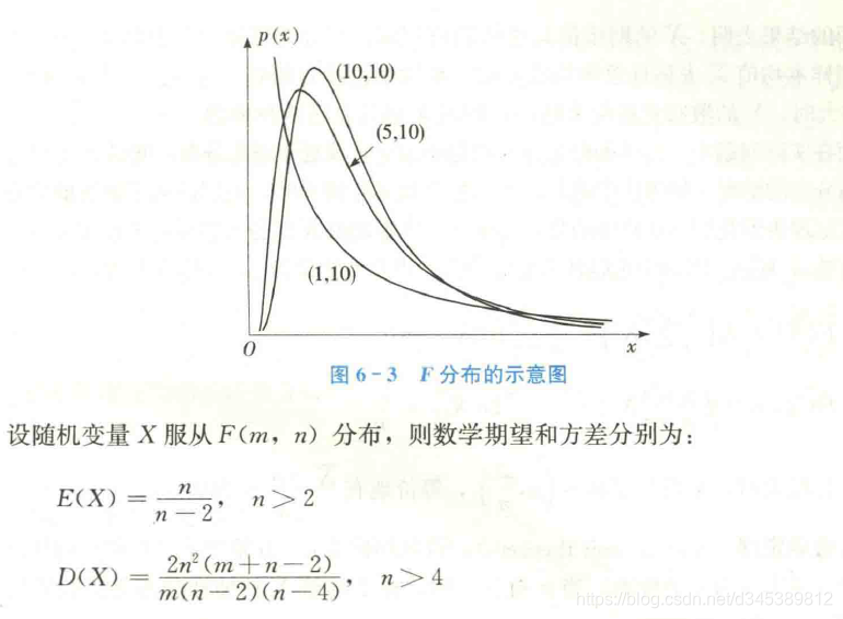 F分布:设随机变量Y与Z相互独立,且Y和Z分别服从自由度为m和n的卡方分布,随机变量X有如下表达式:X = nY/mZ,则称X服从第一自由度为m,第二自由度为n的F分布,记为F(m,n)。