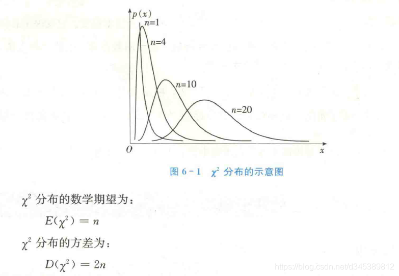 卡方分布:设随机变量X1,X2,…Xn相互独立,且Xi(1,2,…,n)服从标准正态分布N(0,1),则它们的平方和服从自由度为n的卡方分布。