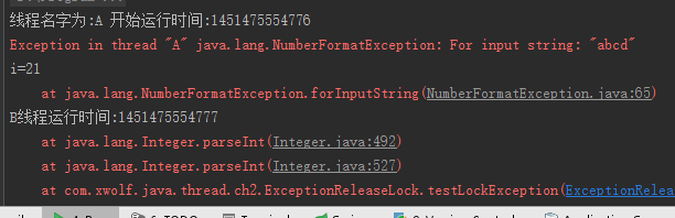 ExceptionReleaseThread2 b = new ExceptionReleaseThread2(lock);