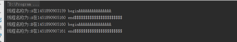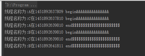 System.out.println("线程名称为:"+Thread.currentThread().getName()+"在"+System.currentTimeMillis()+" begin&&&&&&&&&&&&&&&");