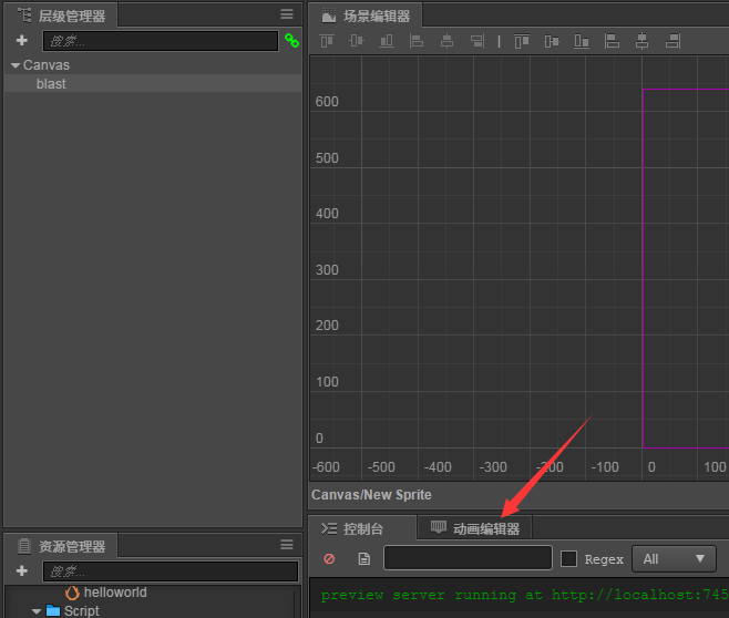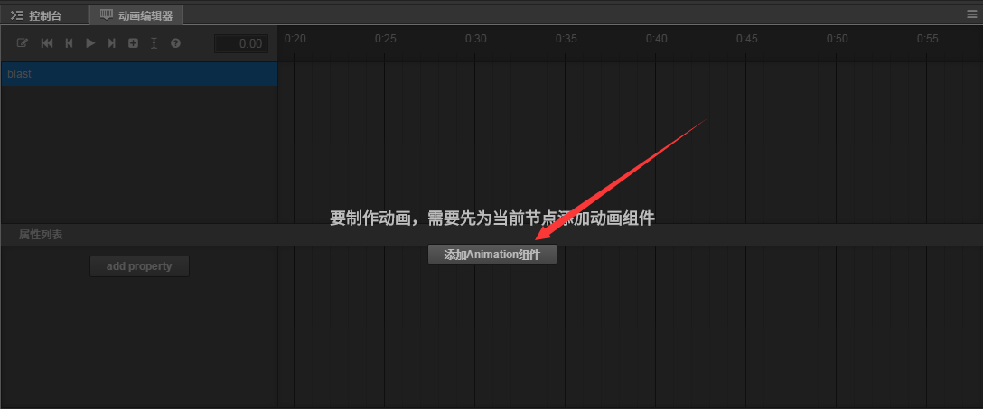 2.选中这个节点,然后选择下面的动画编辑器选项卡