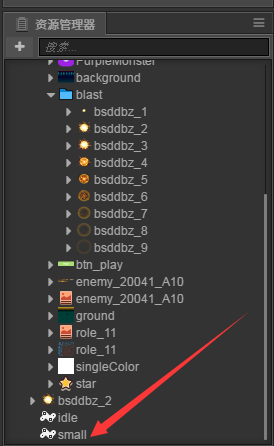 至此,我们已经拥有一个动画文件small.anim,在我们的资源管理器中能够看到他