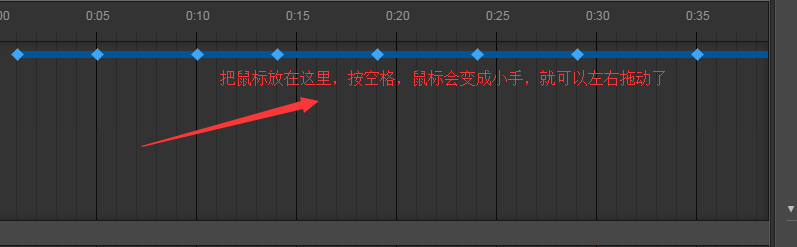 按住空格,拖拽鼠标左键,就能移动时间轴
