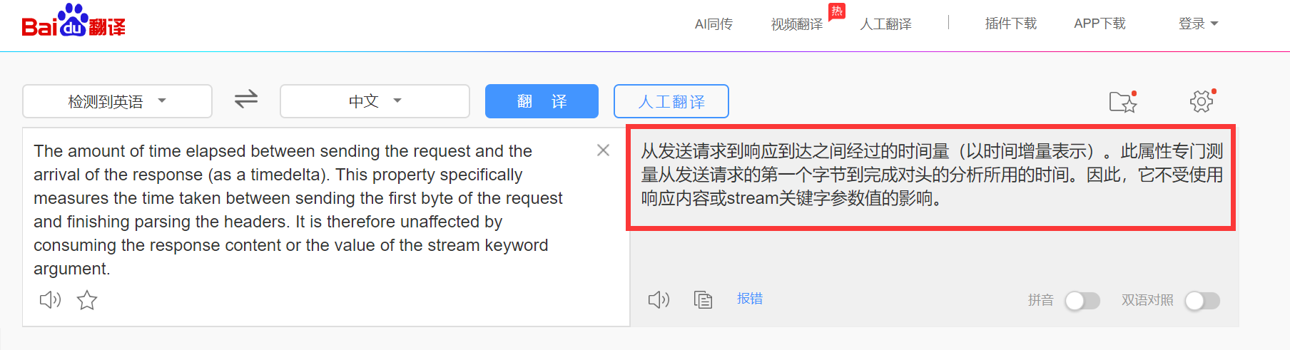 elapsed方法的官方文档地址:http://cn.python-requests.org/zh_CN/latest/api.html#requests.Response