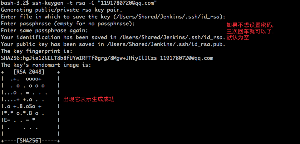 ssh-keygen -t rsa -C "你的邮箱标识"