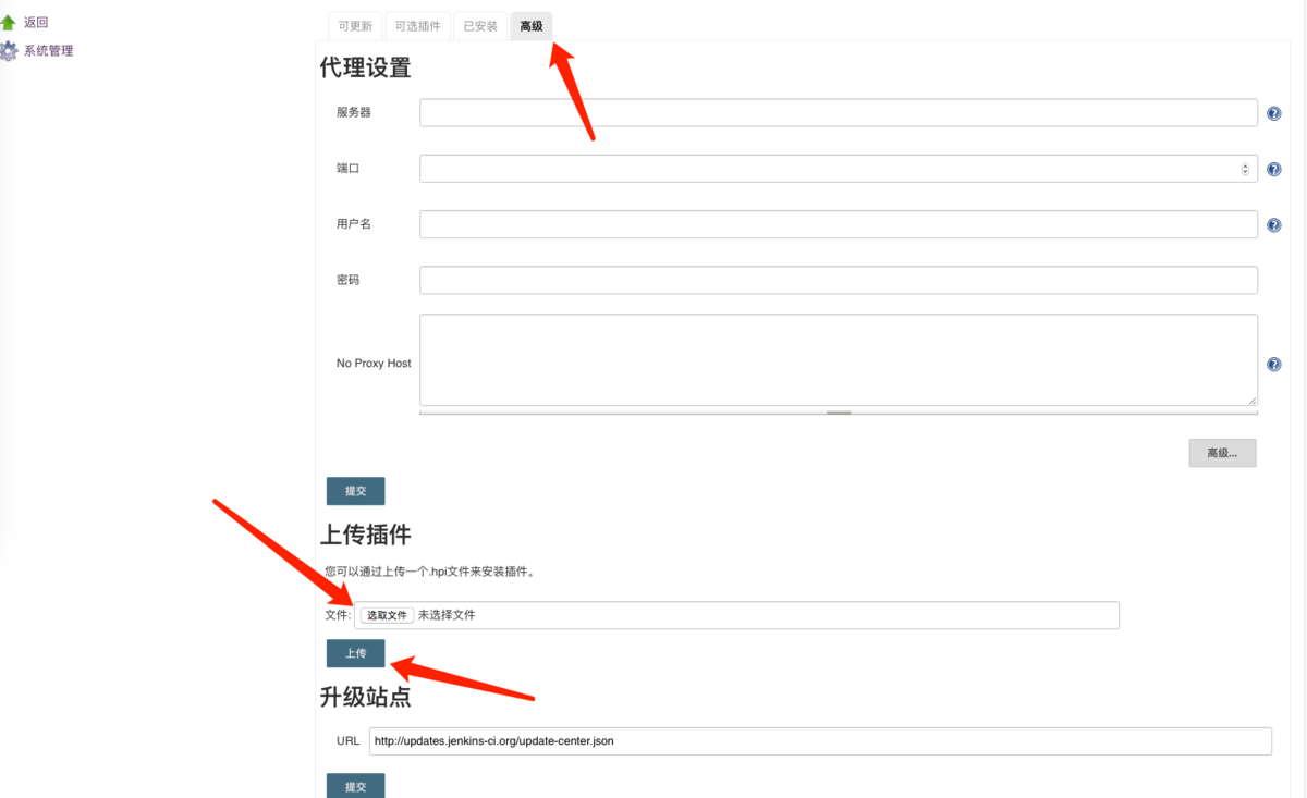 进入Jenkins界面后,点击系统管理->插件管理->可选插件: 搜索自己想要安装的插件进行安装,待所有插件安装完成后进行重启Jenkins, 在浏览器中输入http://localhost:8080/restart
