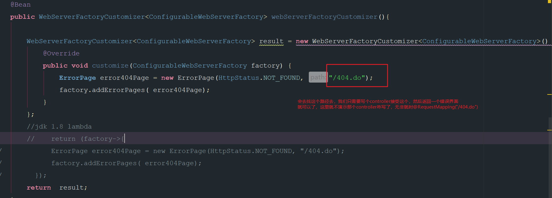 // ErrorPage error404Page = new ErrorPage(HttpStatus.NOT_FOUND, "/404.do");