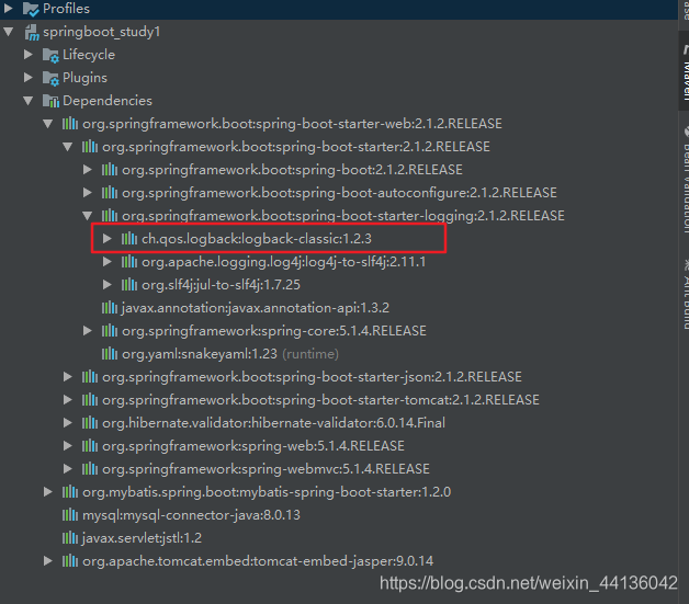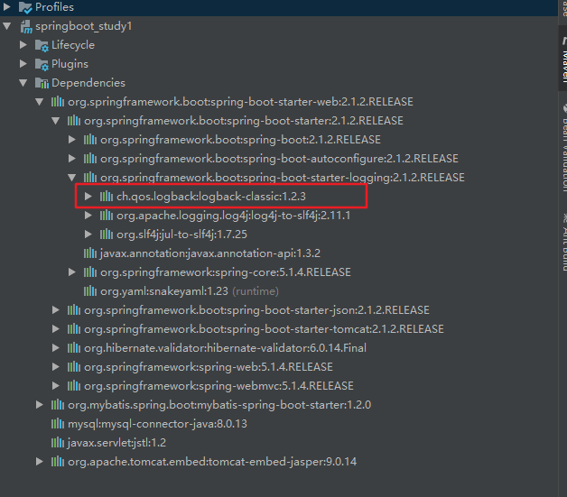 即简单日志门面。SLF4J并不是具体的日志框架,而是作为一个简单门面服务于各类日志框架,如java.util.logging, logback和log4j。SLF4J提供了统一的记录日志的接口,对不同日志系统的具体实现进行了抽象化,只要按照其提供的方法记录即可,最终日志的格式、记录级别、输出方式等通过绑定具体的日志系统来实现。相当于JDBC。SpringBoot内置集成了logback。下图证明