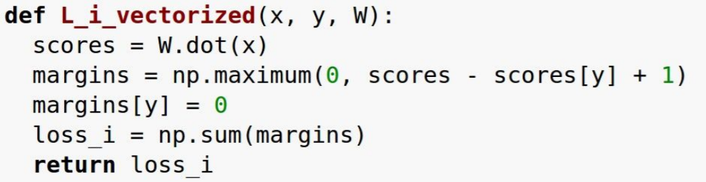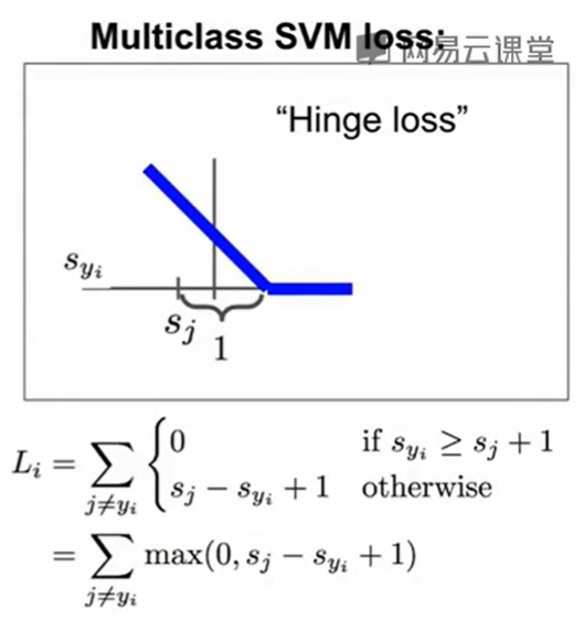 这里是损失函数随错误分类分数增大而增加是线性的,如果改为平方,那么意味着对于分类很错误的情况会带来非常大的损失,也就是这样设计会避免分类很错的情况出现,但是如果分类错误不明显就只做微小修正。