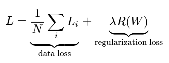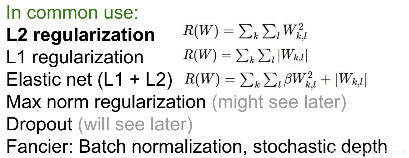 比如这个例子,两个W和x点乘得到相同的分数,但是W2有更小的L2正则惩罚,所以W2更好一点