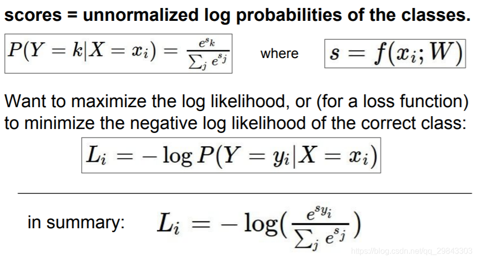 这是一个具体的计算例子,而softmax的loss值实际上不会达到0,因为如果想要loss为0,需要分数非常极端,正确分类分数趋于无穷,而错误分类分数趋于0