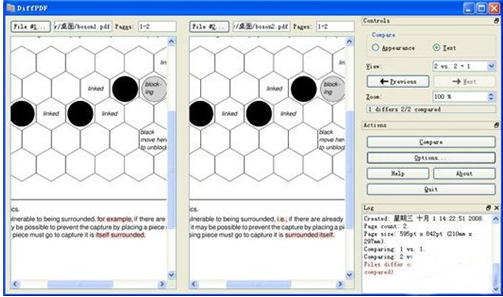 diffpdf是一个非常简单的pdf文件比较工具,它能轻松的对两个pdf文件进行字数,页数等内容的比较。不同之处以高亮形式显示,从而轻松的完成了繁杂的比较任务,省时省力。