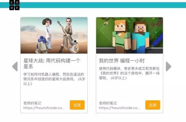 由非营利组织Code.org运营推广,获得了众多科技巨头及奥巴马的支持,曾发起全球超过2亿人参与的“编程一小时(Hour ofCode)”活动,会利用动画《星球大战》、《冰雪奇缘》中的人物吸引小朋友学编程,有中文页面,同样适合学编程的新手。