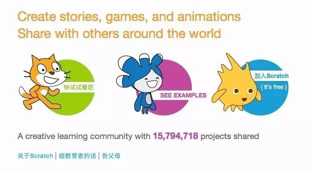 在这里,孩子可以创造属于自己的游戏、动画、影音和故事。Scratch从2007年开站以来,已有超过九百万名会员(年龄集中在10到15岁),创造出了1200万个作品。