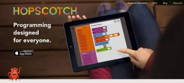 Hopscotch是一款iPad编程工具,运用模块化代码和图形编程界面,儿童只需要拖动编程模块到代码区域就可以完成一个功能,不需要进行任何输入操作,就像堆积木一样,娱乐性非常好,很适合低龄的小朋友培养兴趣。