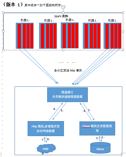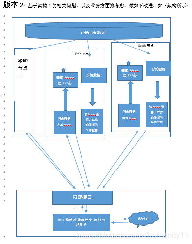 我们将我们的缓存模块单独提取出来做成限速服务,限速服务负责这个HTTP的多线程并发查询网络资源和以及hbase的读写。这样做的优点是具体的业务只需要负责向缓存模块发送http请求,并不需要关心缓存模块内部的实现细节,这样充分实现了业务间的解耦;缺点是hbase的读写性能瓶颈将取决于缓存模块的服务器和带宽。