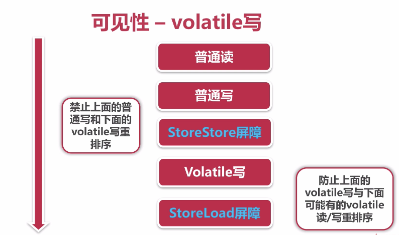 - store指令会在写操作后把最新的值强制刷新到主内存中。同时还会禁止cpu对代码进行重排序优化。这样就保证了值在主内存中是最新的。