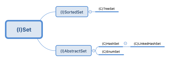 4、Set接口有几个常用的实现类,它们的层次关系如下图所示:
