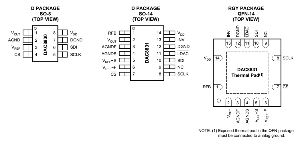 DAC8830是一款TI的DAC输出芯片,他支持16bit数据出入,同时建立时间为1us,支持标准的SPI接口,最快可支持50Mhz,如下为DAC8830的基本封装: