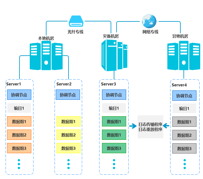 同时,巨杉也支持异地灾备机房的定期追加更新。用户可以通过定义异地灾备机房的同步策略,使灾备机房定期进行日志文件的同步,以做到灾备机房与主机房的数据拥有一定的时间差异,避免手工误操作。