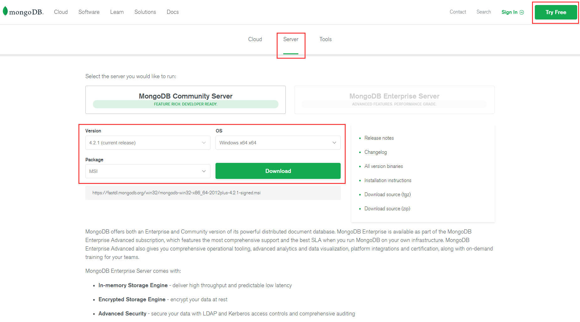 1.下载MongoDB社区版 win64的.msi安装程序