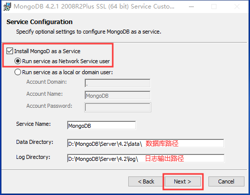 从MongoDB 4.0开始,可以在安装过程中将MongoDB设置为Windows服务,并在成功安装后启动MongoDB服务