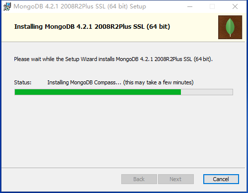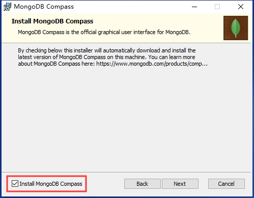 下面可以选择是否安装图形化工具mongodb compass,勾选的话安装时间会比较长