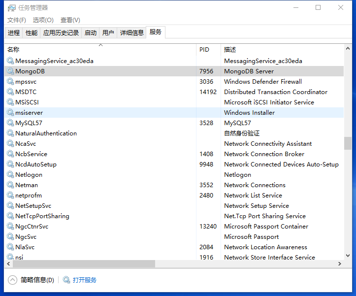 查看MongoDB服务,已经启动: