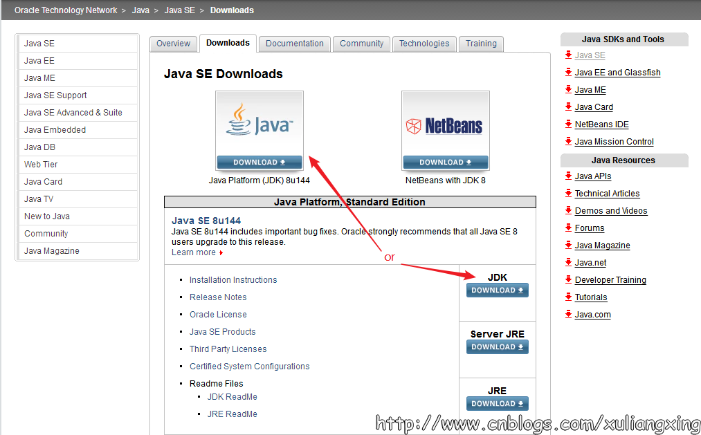 首先需要安装JDK,并且将环境变量配置好,如果已经安装了的老司机可以忽略。JDK(全称是JavaTM Platform Standard Edition Development Kit)的安装,去Oracle官网下载,下载地址是Java SE Downloads 。