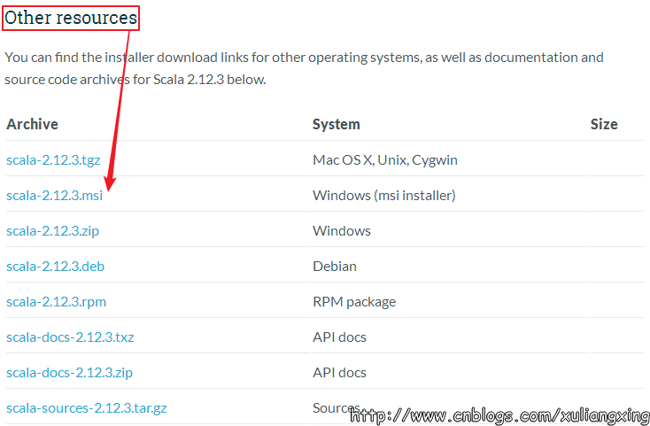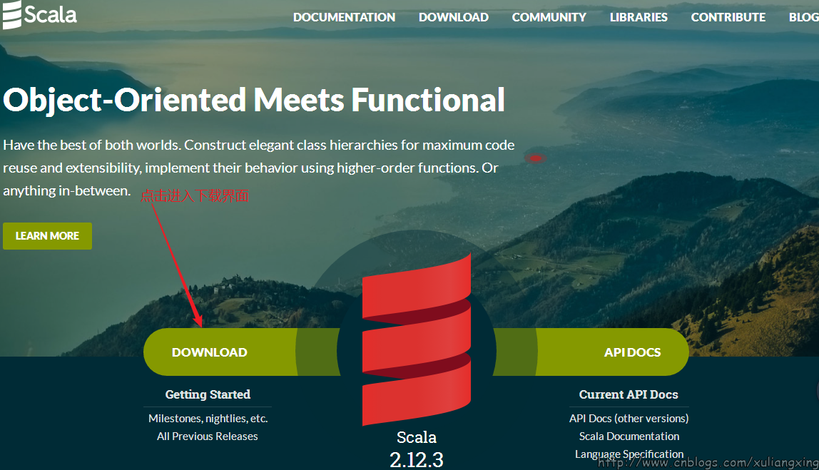 我们从官网:http://www.scala-lang.org/ 下载Scala,最新的版本为2.12.3,如图所示
