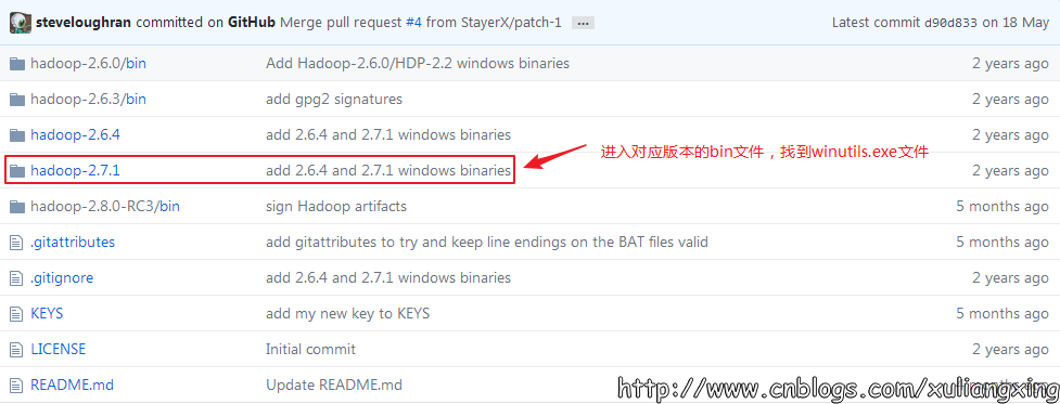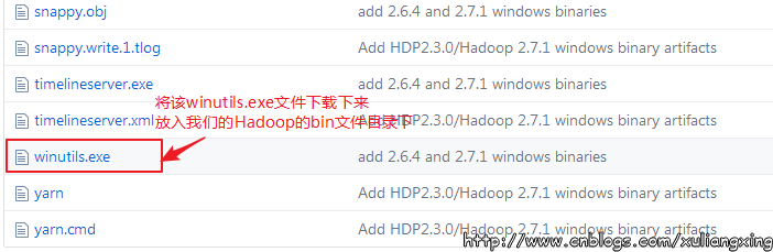 可以去 https://github.com/steveloughran/winutils 选择你安装的Hadoop版本号,然后进入到bin目录下,找到winutils.exe文件,下载方法是点击winutils.exe文件,进入之后在页面的右上方部分有一个Download按钮,点击下载即可。 如图所示: