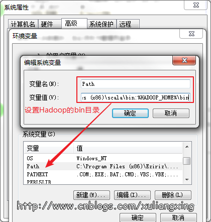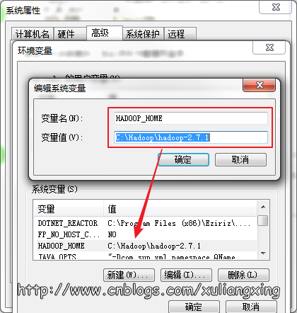 然后到环境变量部分设置HADOOP_HOME为Hadoop的解压目录,如图所示: