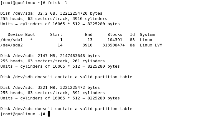 当输入fdisk -l 显示的结果为如下图所示的时候