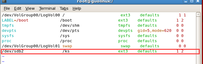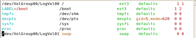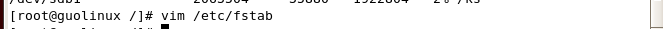 8.如果想一开机就将文件挂载到目录上,不用每次开机都要将所要的目录重新的挂载以遍,方便又省事。指令:vim /etc/fstab ,仿照上面的内容进行仿写从而实现开机挂载。