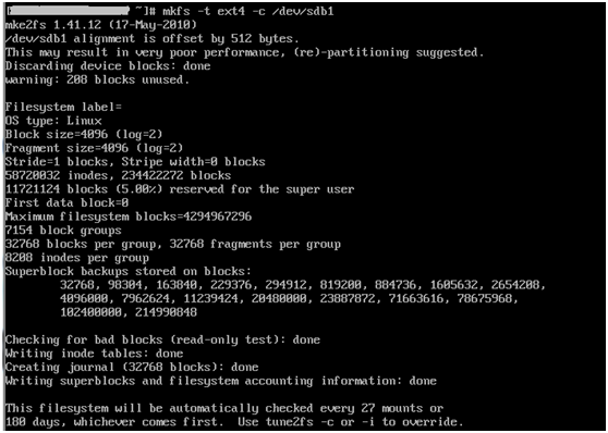 -c 在建立文件系统之前检查坏道,可能会很费时间,新硬盘一般不需要