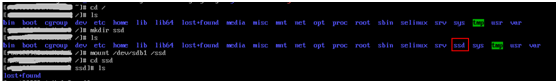 需求: 新增加一块硬盘sdb,将sdb分区,只分一个区,格式化,挂载到目录/ssd下。