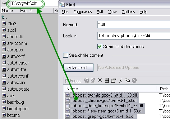 So mark all found .a files and copy them into the directory just createdT:\cygwin\lib\boost .