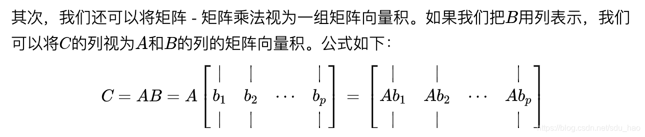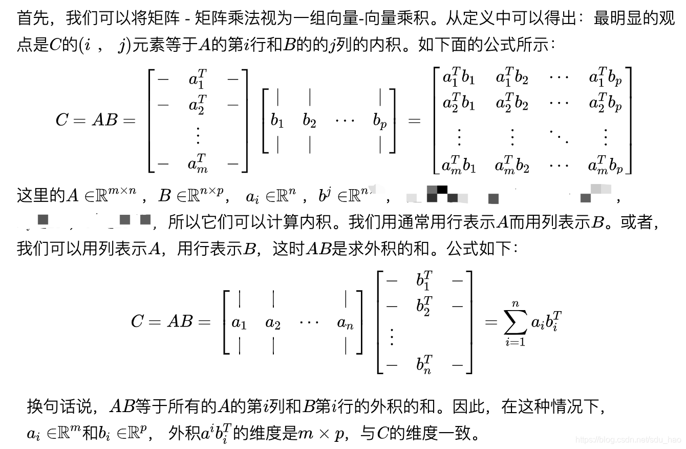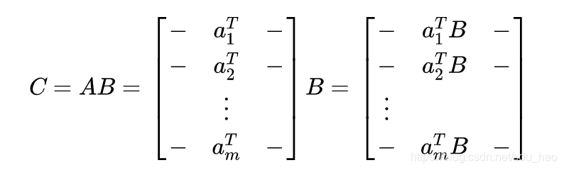 同理,矩阵C的第i行可以由矩阵A的第i行和矩阵B通过矩阵-向量乘积运算得到: