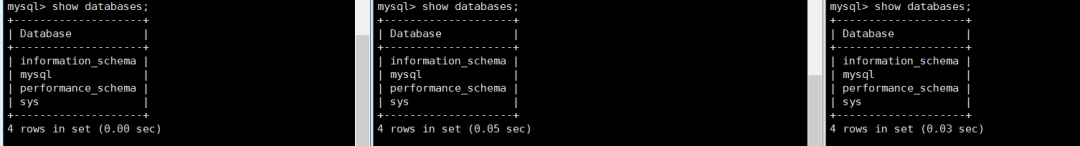 先看看三个MySQL的数据库状态:SHOW DATABASES;