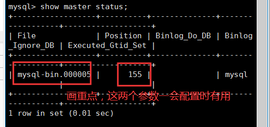 #注意,这里的master_log_pos是binlog偏移量,输入上图中的155,每个人的都可能不一样。